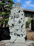 光背には炎を表す火焔光。右手には剣、左手には羂索。天然青御影石を使った、不動明王立像の石像です。