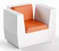 大きくて快適な肘掛け椅子「ビッグカット・アームチェア」。 屋内・屋外両用のソフトクッションがセットされています。 画期的なVカットデザインが空間に居心地の良いスペースをデザインします。 デザイン性が面白い。壊れにくい。水に強い。継ぎ目がない。 その近未来的な佇まいと共存する優れた実用性、そして安全性が光ります。 見る者、使う者、管理する者のすべてを豊かにする 新ジャンル、樹脂製デザイン家具「ポリファニチュア」。