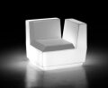 シートの列端に設置し、レイアウトを完結させる「ビッグカット・モジュール」。 屋内・屋外両用のソフトクッションがセットされています。 樹脂製デザイン家具「ポリファニチュア」のライト付きモデルは、 その佇まいに「光る家具のインパクト」を覚えるか、 「柔らかな光に包まれる優しさ」を感じるか、その印象は多彩で すべては見る人に委ねられるライティングオブジェです。