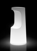 シンプルなラインでカットされた幹部分の途中をフットレストとして凹型にし、 背面に窪みを設け持ちやすくしたスツールです。 樹脂製デザイン家具「ポリファニチュア」のライト付きモデルは、 その佇まいに「光る家具のインパクト」を覚えるか、 「柔らかな光に包まれる優しさ」を感じるか、その印象は多彩で すべては見る人に委ねられるライティングオブジェです。