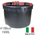 直径157cmの大型プランター!ビッグポット157です。樹木も植えられる大型プランターをお手ごろな価格でお届けします。ありそうでなかったサイズと値段で植木のほかに貯水槽としてもお使いいただけます。黒い鉢は太陽光を吸収しやすく、温まりやすくて根の成長促進に繋がります。 丈夫で柔軟性に富み、耐候性抜群、衝撃にも強い!
