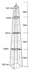 オベリスクでお庭を立体的に演出。高さ約4mのオベリスクです。オベリスクにバラをはわせてつくるタワーは圧巻です。空間のメインポイントとして設置するだけで、ヨーロッパの風を感じるお庭に大変身します。錆に強いパウダーコーティングが施されています。【送 料】4,650円。沖縄県、離島はお問合せください。