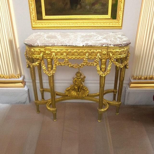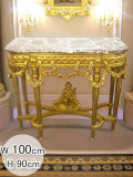 | CONSOLE —コンソール— 音を奏でている天使の姿が可愛いらしい細密で豪華な家具です。格の高い壁面を演出してくれます。天板は天然石を用いて 作られ、天然石ならではの光沢が、豪華さを際立たせています。非常にしっかりとした安定感のあるコンソールです。 4つの脚には細密な彫刻が施されています。 ゴールドフレームミラーと合わせてお使いいただくとゴージャスで、素敵なクラシカルな空間を楽しんでいただけると思います。 |