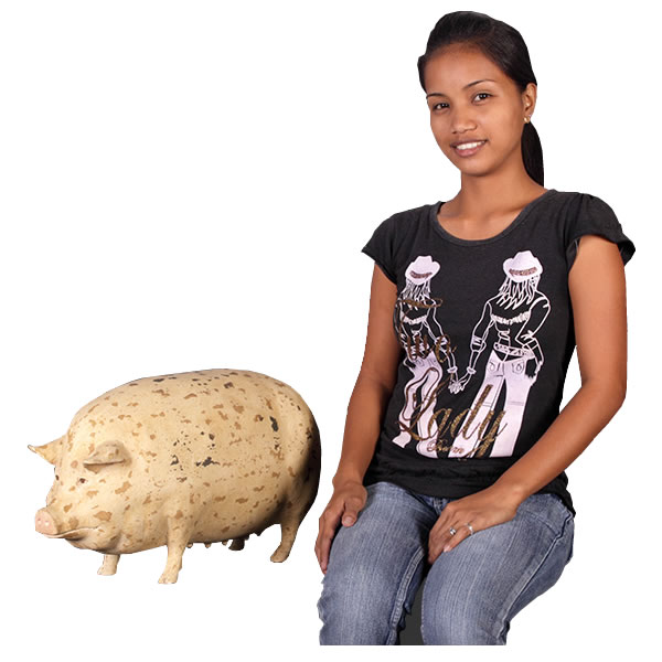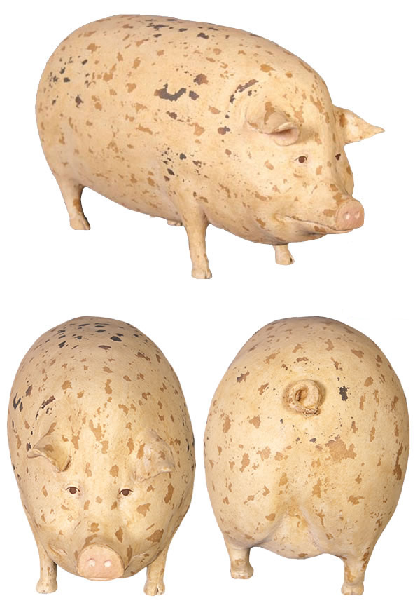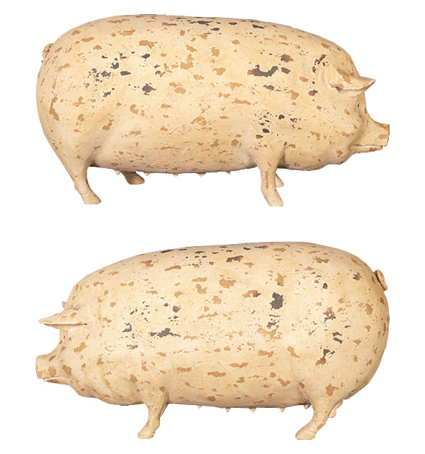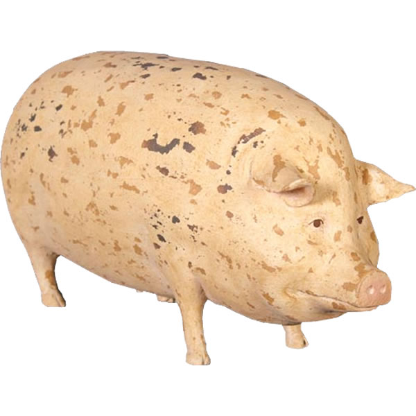 斑点模様が可愛らしいぶたのオブジェです。リアルなつくりとなっていて、しかも樹脂製だから軽くて丈夫で、永くお楽しみいただけるブタの置物(インテリア)です。