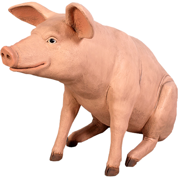 微笑んでいるような表情がかわいいぶたのオブジェです。実物のようなリアルなつくりとなっていて、しかも樹脂製だから軽くて丈夫で、永くお楽しみいただけるブタの置物(インテリア)です。