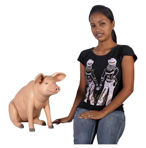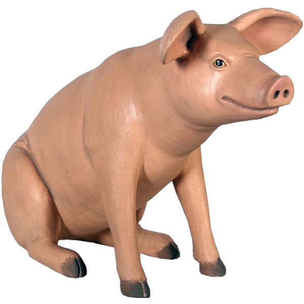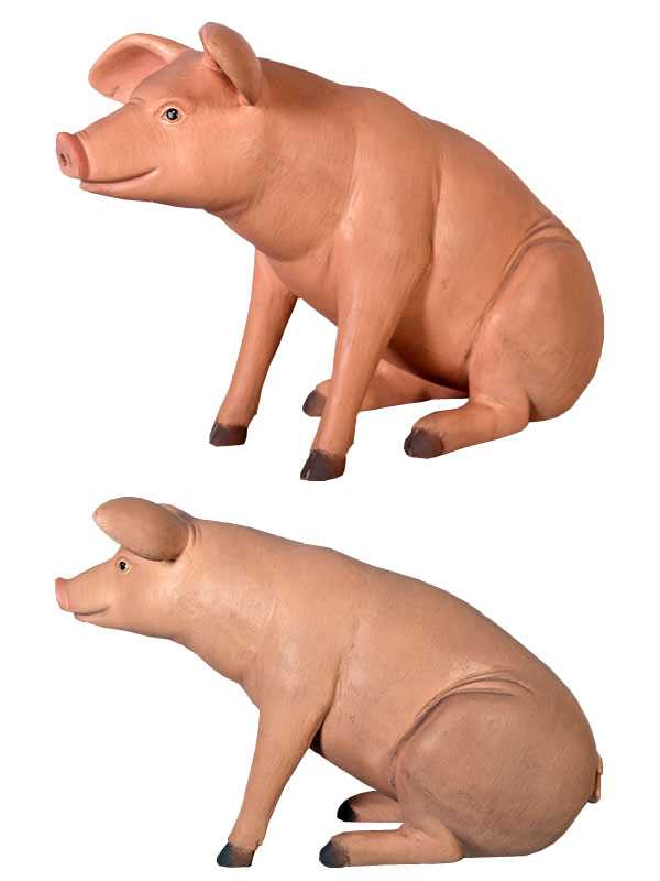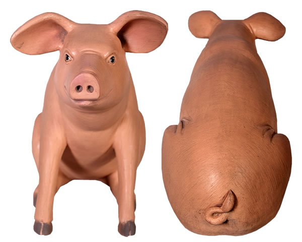 ちょこんと座っている姿が可愛らしいブタのオブジェです。実物と見間違えるようなリアルなつくりとなっていて、しかも樹脂製だから軽くて丈夫で、永くお楽しみいただけるぶたの置物です。