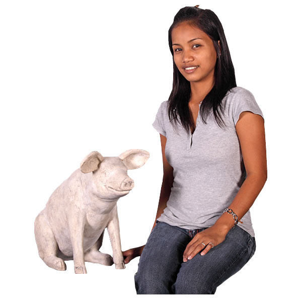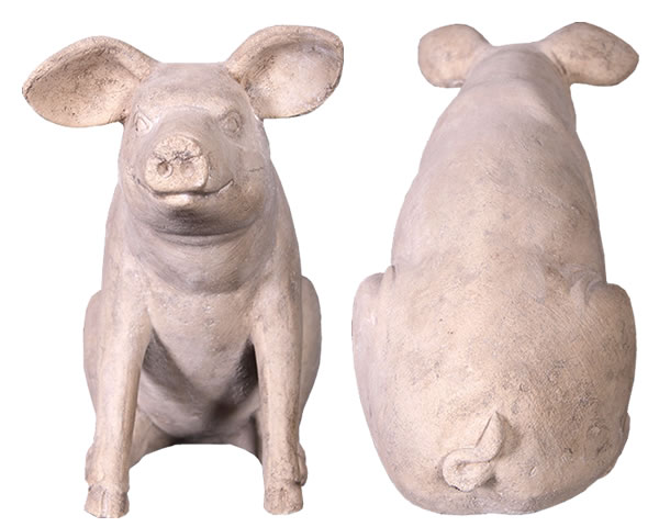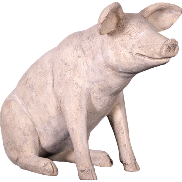 ちょこんと座っている姿が可愛らしいブタのオブジェです。実物と見間違えるようなリアルなつくりとなっていて、しかも樹脂製だから軽くて丈夫で、永くお楽しみいただけるぶたの置物です。