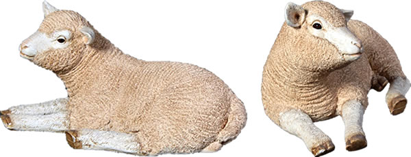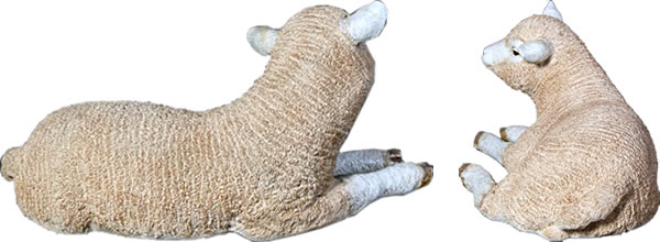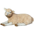 穏やかで優しい瞳。四肢を伸ばしてくつろぐ子ひつじのオブジェです。実物と見間違えるようなリアルなつくりとなっていて、しかも樹脂製だから軽くて丈夫で、永くお楽しみいただける羊の置物です。
