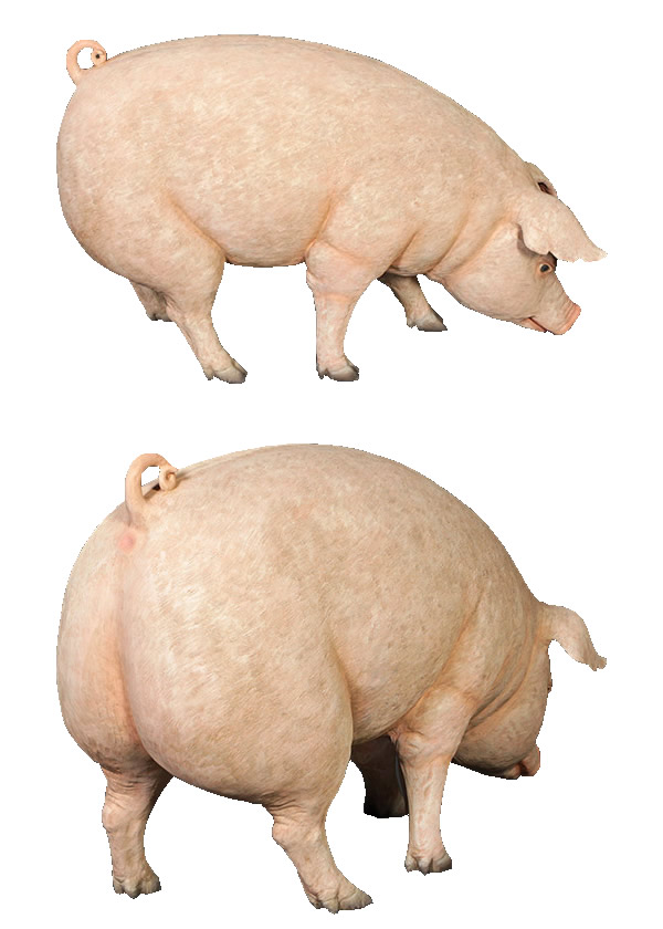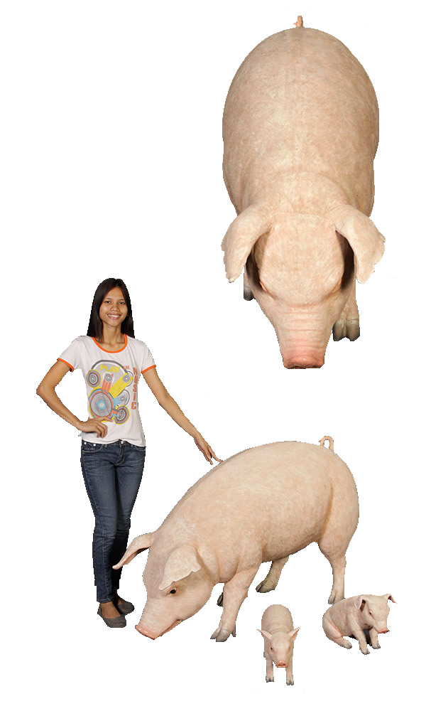 体長約1m28cmのブタのオブジェです。実物と見間違えるようなリアルなつくりとなっていて、しかも樹脂製だから軽くて丈夫で、永くお楽しみいただけるぶたの置物です。