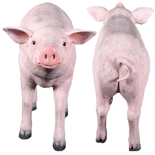 表情が可愛らしいブタのオブジェです。実物と見間違えるようなリアルなつくりとなっていて、しかも樹脂製だから軽くて丈夫で、永くお楽しみいただけるぶたの置物です。