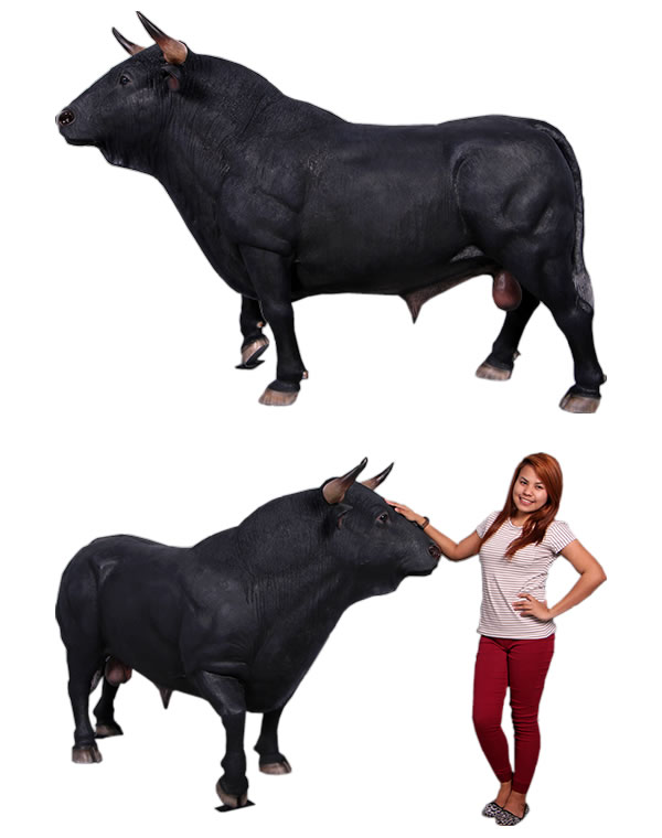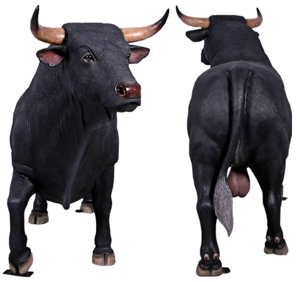 等身大で迫力あるスペインの闘牛のオブジェです。実物のようなリアルなつくりとなっていて、しかも樹脂製だから軽くて丈夫で、永くお楽しみいただけるウシの置物です。