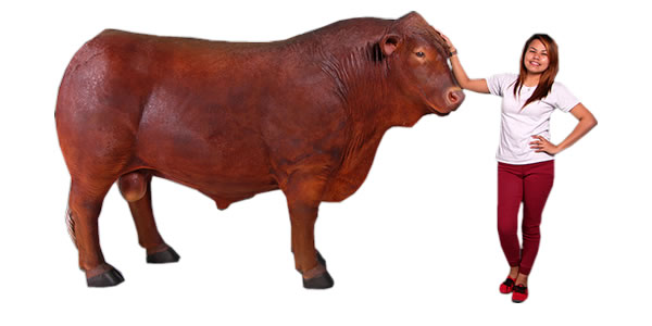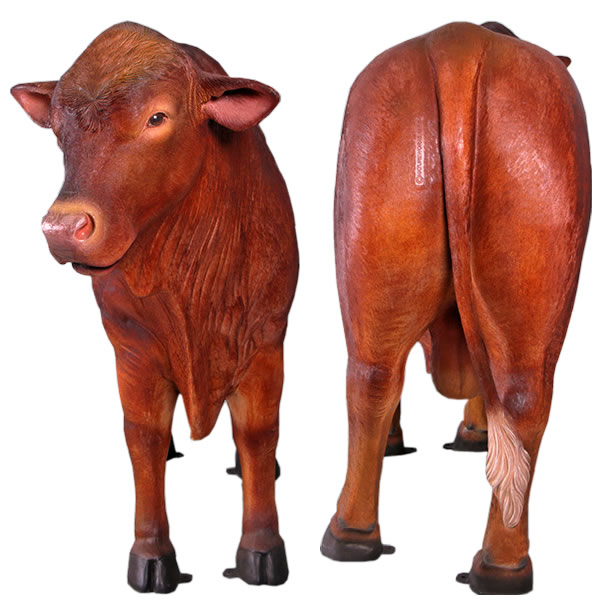 アンガス牛のオブジェです。2mを超える実物大の置物はリアルなつくりとなっていて、しかも樹脂製だから軽くて丈夫で、永くお楽しみいただけます。