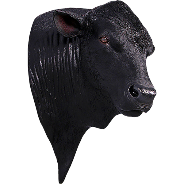迫力あるアンガス牛の壁掛けオブジェです。実物の剥製ようなリアルなつくりとなっていて、しかも樹脂製だから軽くて丈夫で、永くお楽しみいただけるウシの置物(インテリア)です。