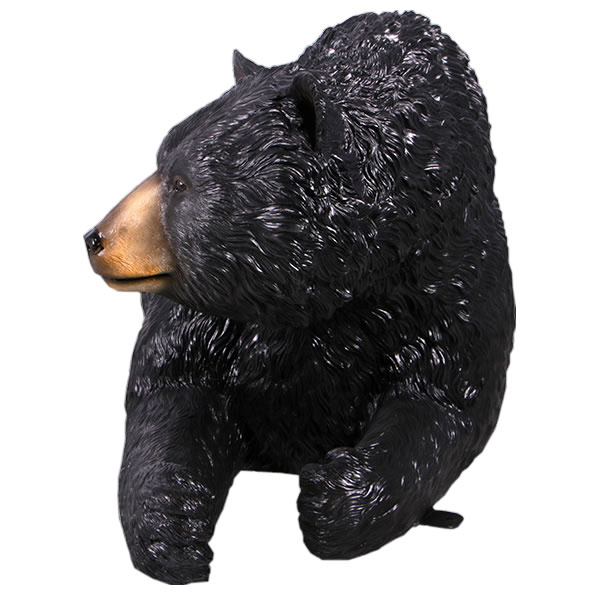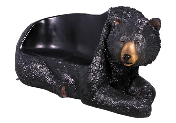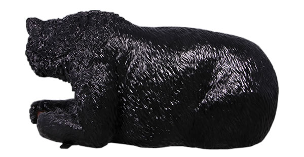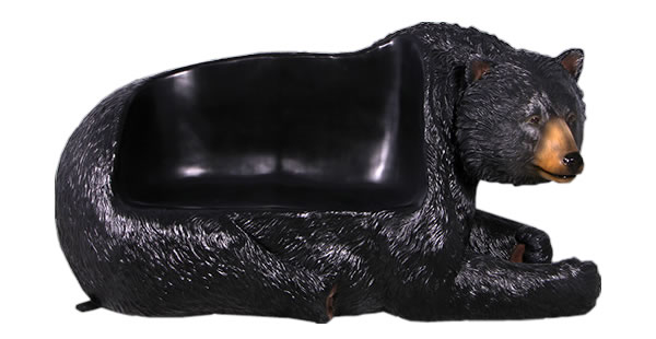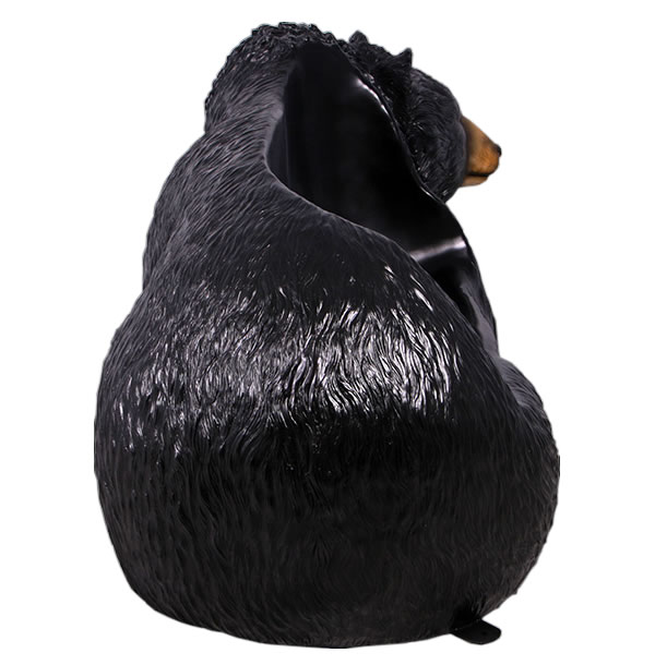 リアルなつくりの黒クマのベンチ(オブジェ)です。樹脂製だから軽くて丈夫で、永くお楽しみいただける熊(くま)の置物です。