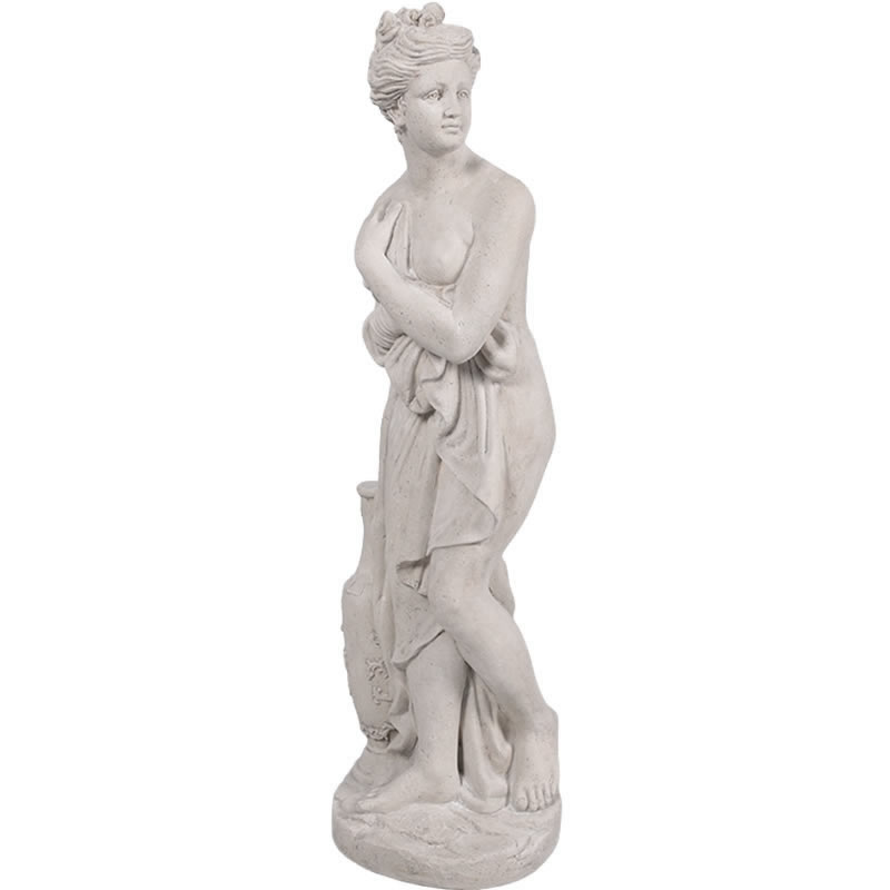 19世紀を代表する彫刻家アントニオ・カノヴァが、失われた古代の傑作に代わるものとして制作した伝説的彫刻「ヴィーナス・イタリカ Venus Italica」を再現したFRP製オブジェです。水浴中に人の気配を感じ、反射的に布を胸元に引き寄せる――。その人間味あふれる一瞬の「美」が、あなたの空間をドラマチックに演出します。