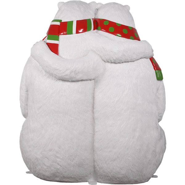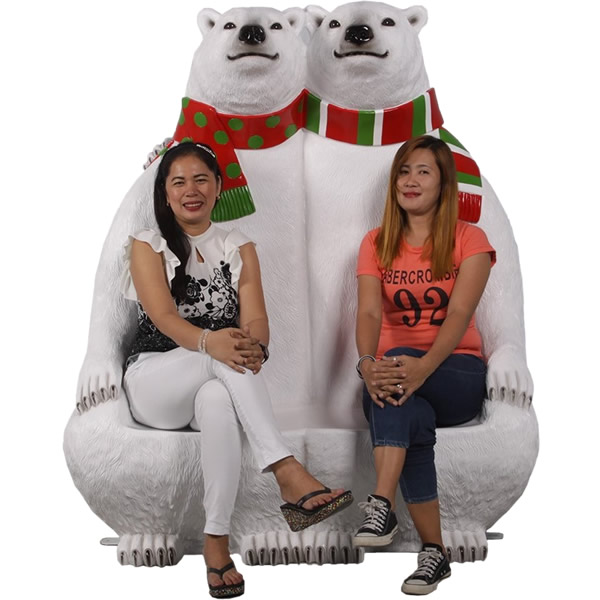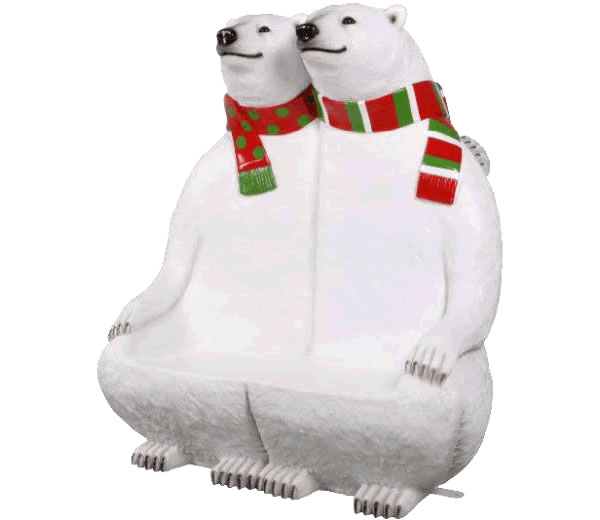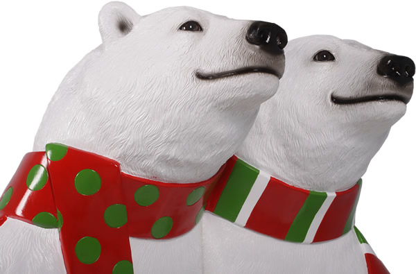 ホッキョクグマが仲良く並んでいるのオブジェ(ベンチ)です。樹脂製だから軽くて丈夫で、永くお楽しみいただける北極熊の置物です。