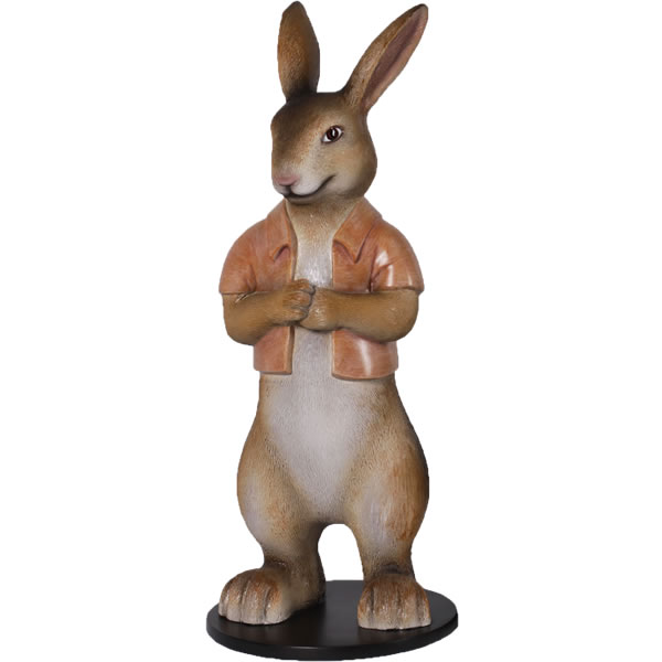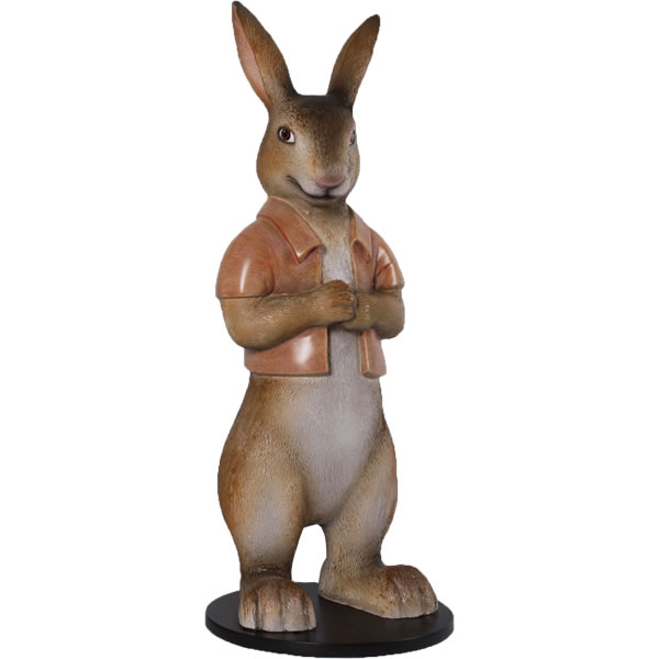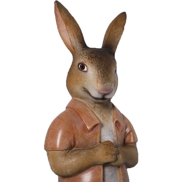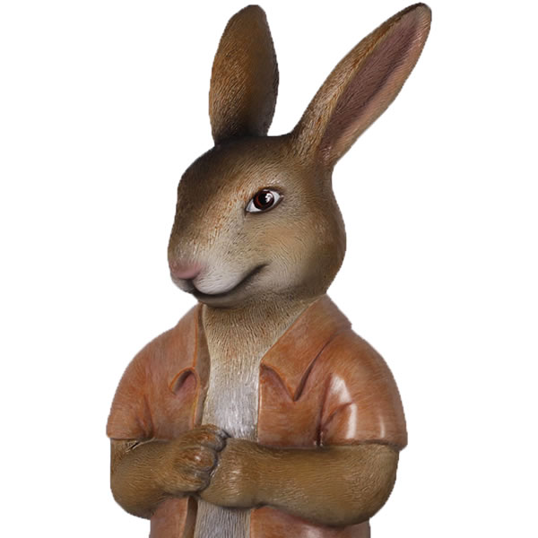 半袖を羽織った可愛いウサギのオブジェです。大きさも手ごろでインテリアとしてもガーデンオーナメントとしてもお使いいただけます。リアルなつくりとなっていて、しかも樹脂製だから軽くて丈夫で、永くお楽しみいただけます。
