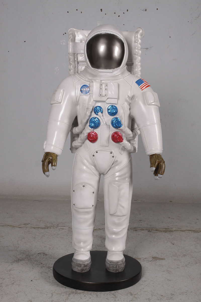 宇宙服を纏っている宇宙飛行士のオブジェです。リアル表現されていて、しかも樹脂製だから軽くて丈夫で、手軽にお楽しみいただける高さ125cmの人形です。