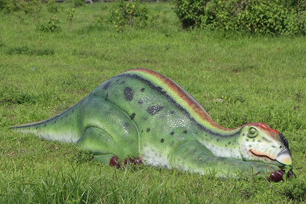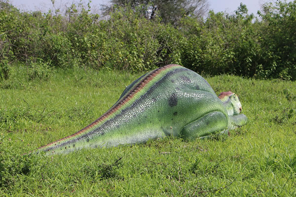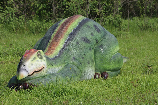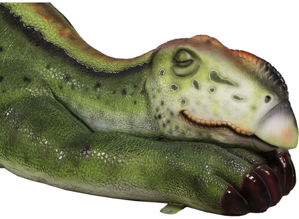 眠るムッタブラサウルスのオブジェです。 FRP(繊維強化プラスチック) 樹脂製だから軽くて丈夫で、永くお楽しみいただける置物です。