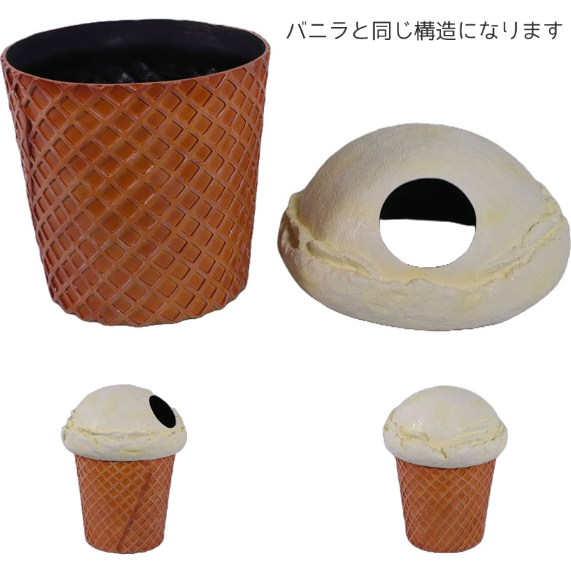 アイスクリームの形をしたダストボックスです。リアル表現されていて、しかも樹脂製だから軽くて丈夫で、手軽にお楽しみいただけて、フォトスポットとしても映えるオブジェになります。