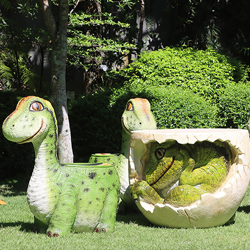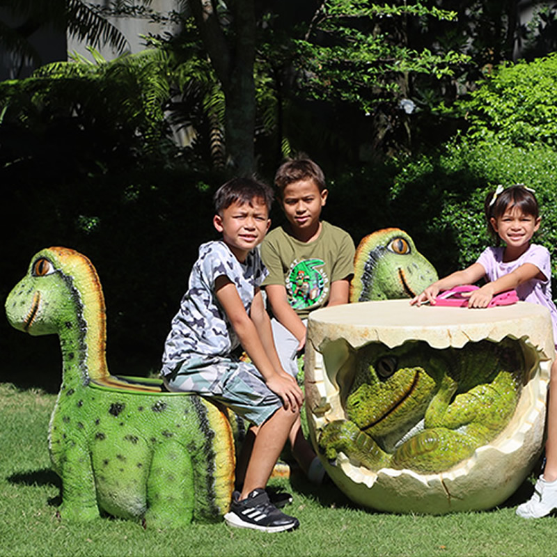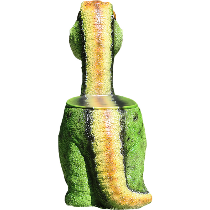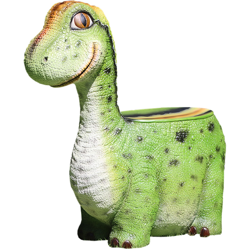 愛嬌ある表情をしている恐竜の椅子(オブジェ)です。FRP(繊維強化プラスチック) 樹脂製だから軽くて丈夫で、永くお楽しみいただける置物です。
