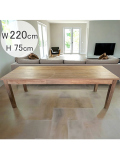 220cmの横幅に加え、3cm厚の天板が生み出す、重厚で上質な存在感。 一目で伝わる安定感が、空間の主役としての風格を演出します。 家庭用、店舗用として木の風合いを楽しめる大型テーブルです。 今なら送料無料でお届けします。