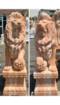天然大理石彫刻「ピンク大理石 ライオン ペア」は、希少なピンク大理石を使用したライオン像2体セットです。堂々とした佇まいと精緻な造形が魅力で、庭園やエントランス、屋外空間に優雅で重厚な存在感を演出します。