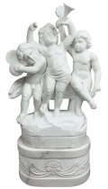 天然大理石の原石から彫刻した作品です。大きな1つの無垢石から彫りぬかれた作品は他では中々見られない素晴らしい仕上がりになっております。それぞれが楽器を持って奏でようとしている愛らしい姿が細部まで丁寧に彫刻されています。天然大理石ならではの美しく高級感のある質感を感じていただくことのできる彫刻作品です。