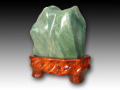 【石肌の質感、鮮烈な緑をその目で】高さ39.5cm。深い緑と結晶の輝きが美しい「グリーンクォーツ」の台付き景石。水石としても愉しめる自然の造形が、空間に癒しと品格をもたらします。地元・前橋市の展示場にて、写真では伝えきれない瑞々しい輝きをぜひ直接お確かめください。