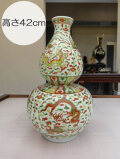 景徳鎮 嘉靖赤絵龍鳳凰文シノギ型花生 |