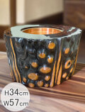 自然の木肌を生かした高級感のあるくりぬき手あぶり火鉢です。 展示品なのでスレや小傷等はございますが、未使用品なので内部は綺麗です。 高さ約33.5cm 幅約57cm 奥行約53cm 内径約30cm 深さ約19cm。古木家具特有のスレや小キズ等が入っている箇所がございます。古木家具の特徴をご理解の上、ご検討ください。細かい点が気になる方はご遠慮くださいませ。店舗にて展示してありますのでお越しいただければ品物をご覧いただくことができます。