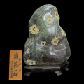 菊花石(きっかせき)とは、1億年前、海底火山の噴火により出来たとされる石で、その名のとおり見た目が「菊の花」に似ていることから名づけられたそうです。 国内ではこの岐阜県本巣郡根尾村で採れるものが大変有名で昭和30年に『特別天然記念物』に指定されており、現在では採掘禁止になっている大変希少な石です。しかも当社でもほぼ数個しか残っておらずほとんどすぐに売れてしまいます。状態も大変よく、中でも美しいものばかりです。とても偶然に出来たとは思えない、方解石の放射線状に伸びた美しい景色は究極のヒーリングストーンと言われています。 自然の石には目には見えないですがもの凄いパワーが秘められていると言われています。人は心身の疲れや、心の癒しを求める時ほど山や川、海など、自然を感じたくなるものです。それと一緒で、眺めているだけでなんとなく癒されたり、近くにあるだけで気が付かないのですが身体のエネルギーを整えてくれたり、良い気を倍増してくれるという力が、こうした自然の中で生まれた石にはあるそうです。 不思議ですよね。自然が作り上げた芸術品です。石の持つパワーだけでなく、見た目の美しさまで完備した『菊花石』しかも 根尾谷で採取された希少な菊花石です。 家宝として、厄除けとして是非飾って欲しいオススメの天然石です。もちろん世界に1つだけの現品のみです!【サイズ】全高約42cm 全幅約29cm 全奥行約19cm 約27kg